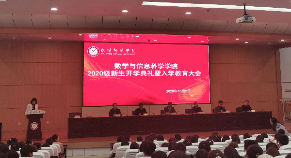 10月9日,数学与信息科学学院在报告厅举行2020级新生开学典礼,会议由副书记郭金婵主持,学院全体党政领导、各教研室主任、专业负责人、2020级班主任、全体辅导员参加本次会议。