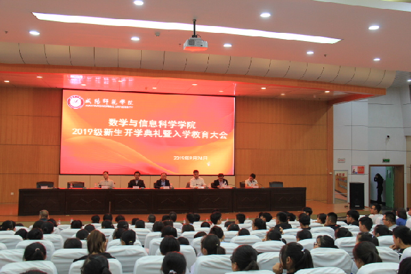 9月24日,数学与信息科学学院在1号教学楼学术报告厅举行2019级新生开学典礼暨入学教育大会。院党委副书记郭金婵主持会议。