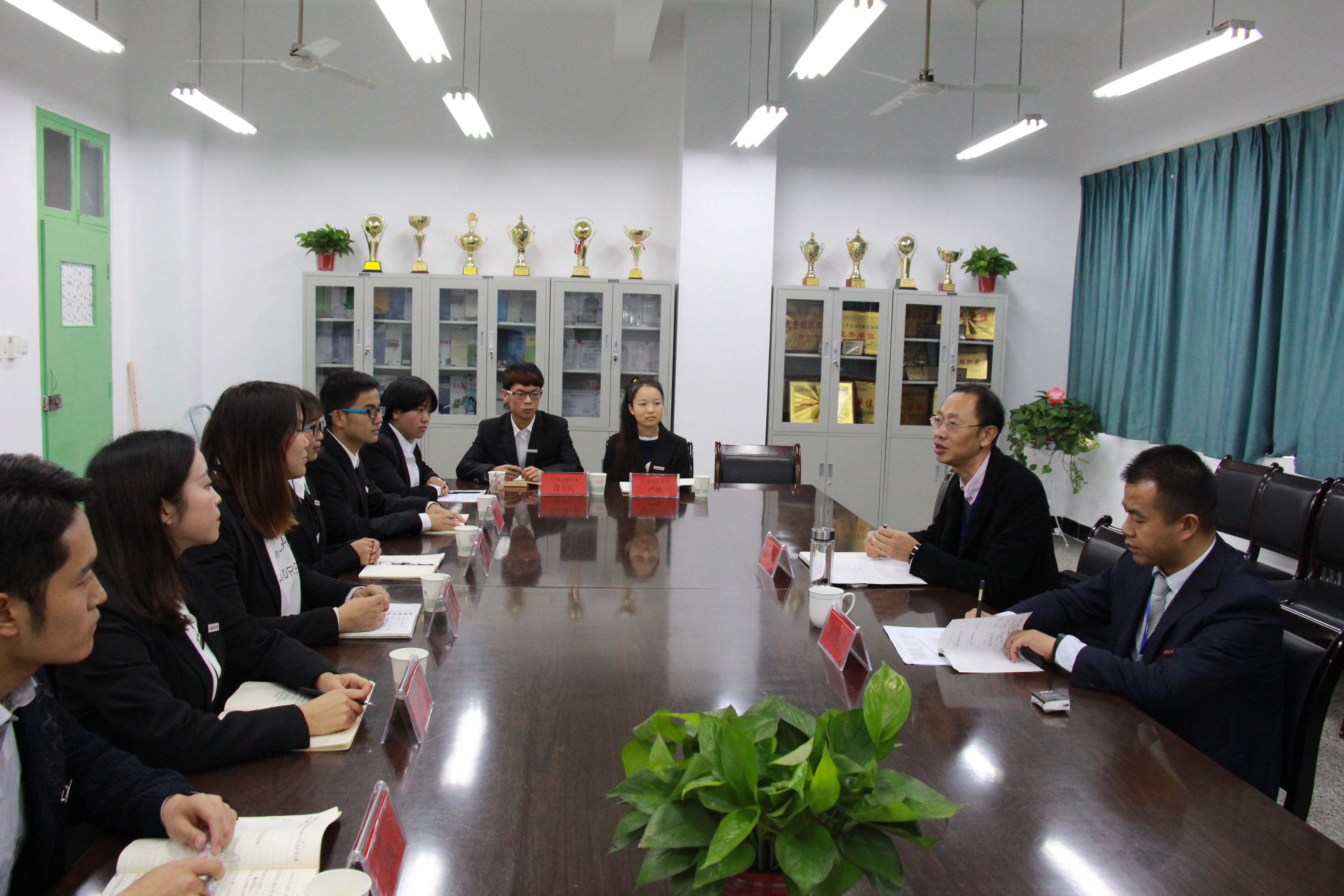 在听取院长唐泉教授的学院工作汇报后,胡教授主持召开了两个座谈会。在与学院领导、管理干部和教师代表的座谈会上,胡教授就学院发展目标与学校定位的匹配性、教师教育教学改革、学生服务与管理、毕业生的就业情况等方面和与会人员进行了深入交流。在与学生代表的座谈会上,胡教授了解了学生的学习体会。